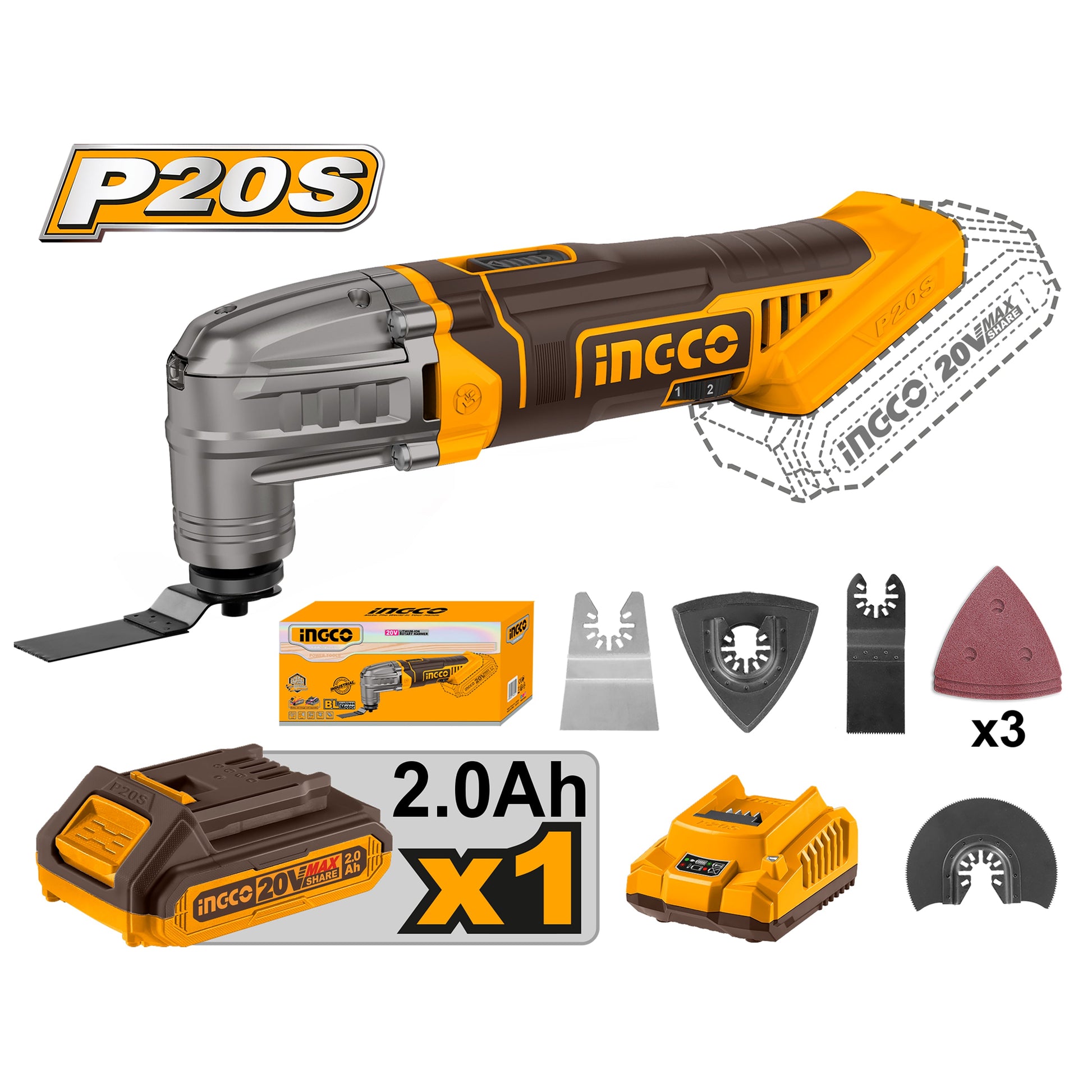 أداة متعددة الاستخدامات لاسلكية تعمل ببطارية ليثيوم أيون بقوة 20 فولت مع إمكانية تعديل 6 سرعات P20S ING-CT