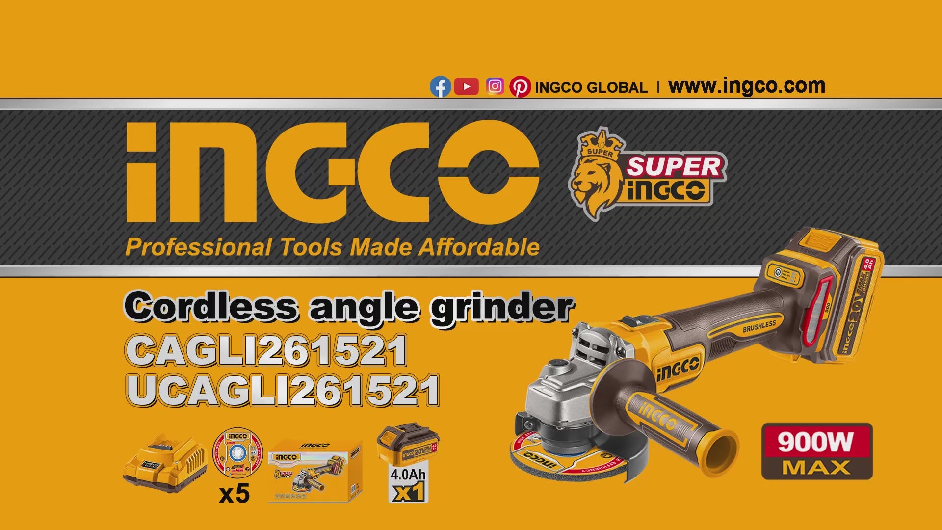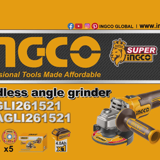 INGCO MALETTE MEULEUSE 115MM 20V + 1BATT 4AH + 5DISQUES [CAGLI261521]