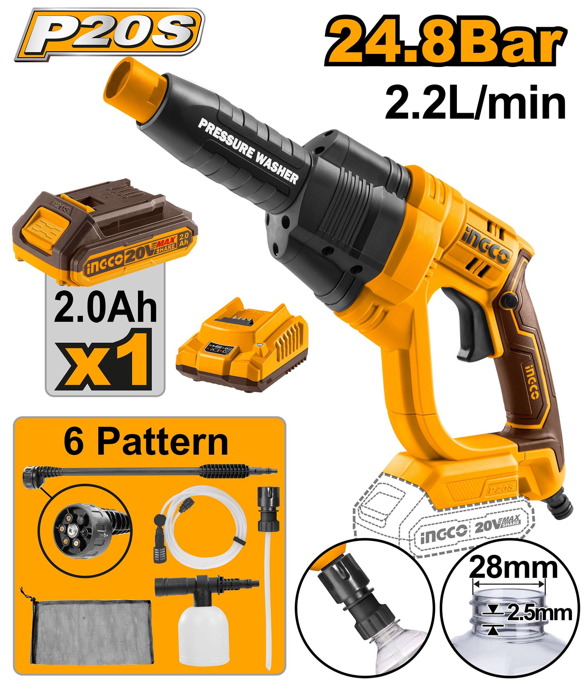 INGCO NETTOYEUR HAUTE PRESSION LITHIUM 20V 25BAR [CPWLI20082]