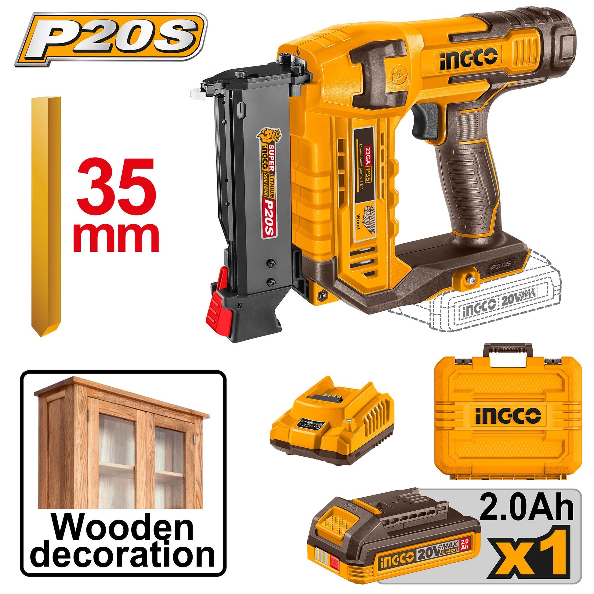 INGCO CLOUEUSE 20V +1 BATTERIE & CHARGEUR INGCO 25MM [CBNLI3606]