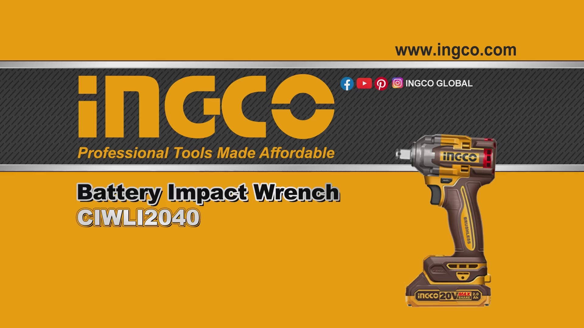 INGCO BOULONNEUSE A CHOC 400NM SANS CHARBON 20V+2BAT 2.0 [CIWLI2040]