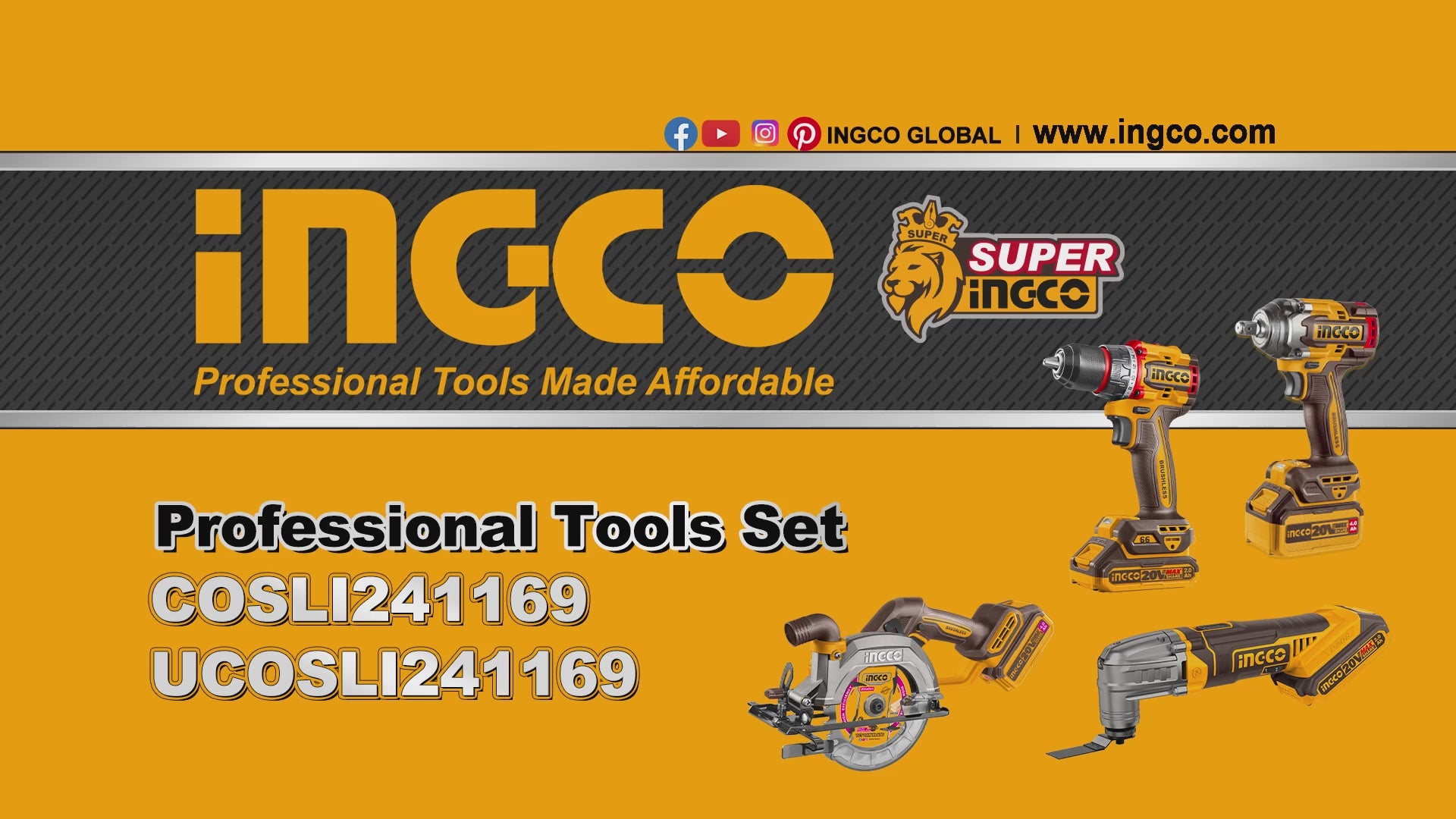 INGCO PACK DE 4 MACHINES PERCEUSE+SCIE CIRCULAIRE+BOULONNEUSE+MULTIFONCTION [COSLI241169]