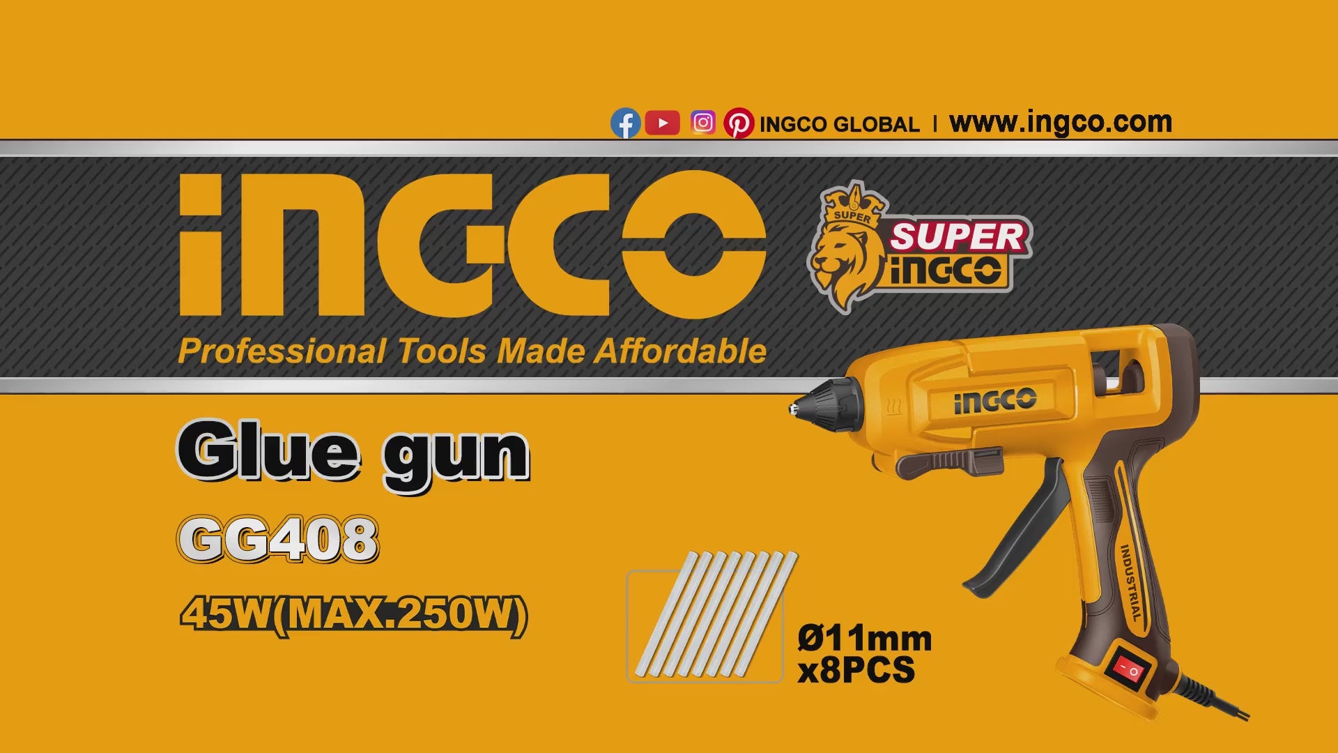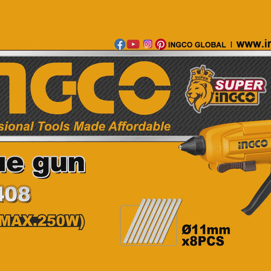 INGCO PISTOLET A COLLE 250W + 8 BATONS COLLE [GG408]